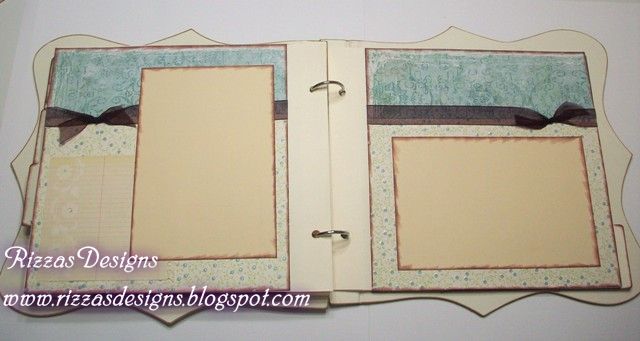 For the first page I stamped the couple's monogram in a deep Chestnut Brown color. It's amazing what ribbon can do for your pages, especially when it is velvet. So yummy to look at!On the next following pages I added photo mats to hold 4x6 photos of the couples special day. I used Making Memories tear out sheets for journaling. What is an album without journaling? The photo mats are sized slightly bigger to add that framed look.